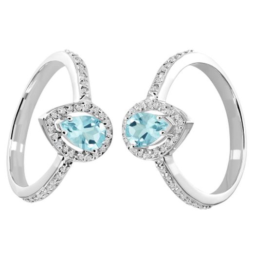 Anillo Sortija Roseta Oro Blanco 18kts Diamantes 0.19cts 0109905. Anillo fabricado en oro blanco 18kts. 1 Agua Marina talla pera de 6x4 (0.30 cts.) y 18 diamantes talla brillante de 1.00 mm y 20 diamantes talla brillante de 0.80mm. Calidad H-VS/SI. Motivo de 9.5 x 7.5 mm aprox. Ref 0109905