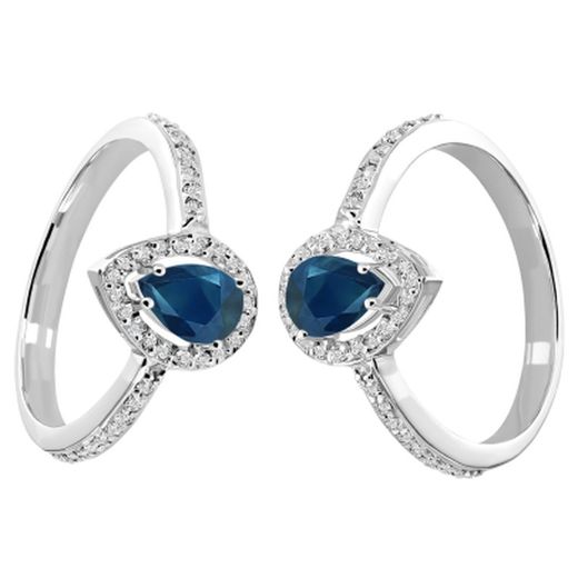 Anillo Sortija Roseta Oro Blanco 18kts Diamantes 0.19cts 0109915. Anillo fabricado en oro blanco 18kts. 1 Zafiro talla pera de 6x4 (0.50 cts.) y 18 diamantes talla brillante de 1.00 mm y 20 diamantes talla brillante de 0.80mm. Calidad H-VS/SI. Motivo de 9.5 x 7.5 mm aprox. Ref 0109915