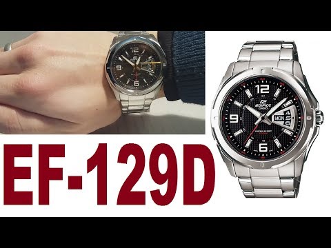 Casio Edifice EF-129D-1AVEF stalen horloge. Massieve roestvrijstalen kast en roestvrijstalen armband. Zwarte wijzerplaat. Neon-weergave. Kalender. Mineraal Kristal. Kwarts. Onderdompelbaar 100m. 2 jaar garantie. Ref.EF-129D-1AVEF
