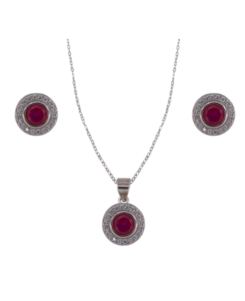 Conjunto Plata Mujer PJUE351/R Circonitas Roja Bicolor Blanca