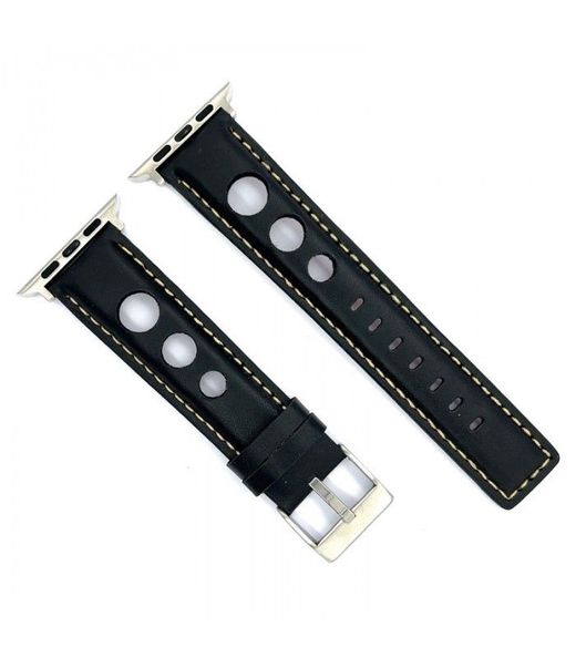 Correa Reloj Apple Watch Diloy Piel Negra 44mm C. Adaptador Acero Plateado AWP355.01CC.44. Correa de reloj fabricada en piel negra y adaptador de acero plateado. Correa de cuero estilo racing con perforaciones. Compatible con Apple Watch Series 1, 2, 3, 4, 5, 6, 7, 8, 9, SE, SE2 Ultra. Cierre hebilla. Ancho 44mm. Producto de excelente calidad, con garantía contrastada que asegura su fiabilidad y durabilidad. Ref AWP355.01CC.44