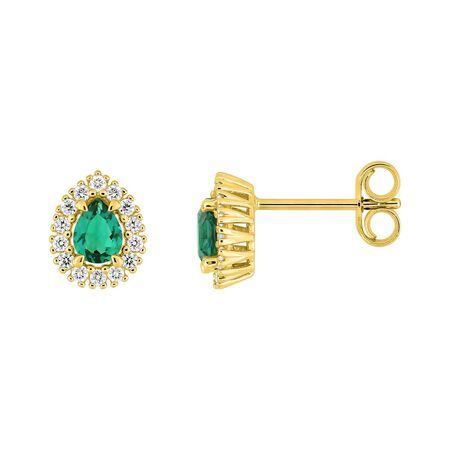 Pendientes Oro 9Kts (9)9KLGE222Y Diamantes Laboratorio 0,14ct - Esmeralda. Pendientes fabricados en oro de 9kts. Diseño de 14 diamantes y 1 esmeralda c/u montados en grapas. De 0,14ct en total. De calidad di.syn f-vs o.b. Cierre presión. Peso de 0,70gr. Certificado de autenticidad y garantía de calidad en los materiales de fabricación. Ref (9)9KLGE222Y