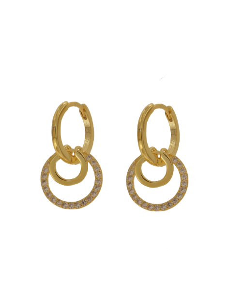 Pendientes Plata Dorada Mujer PPAC110/C Aro Colgante Círculo Circonitas. Pendientes fabricados en plata dorada de ley 925. Diseño de aro con colgante de círculo de circonitas. Cierre click. Certificado de autenticidad y garantía de calidad en los materiales de fabricación. Ref PPAC110/C
