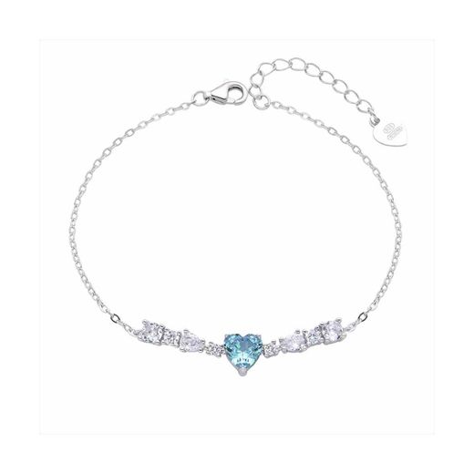 Pulsera Plata B19914AQ Piedra Corazón Azul Con Circonitas