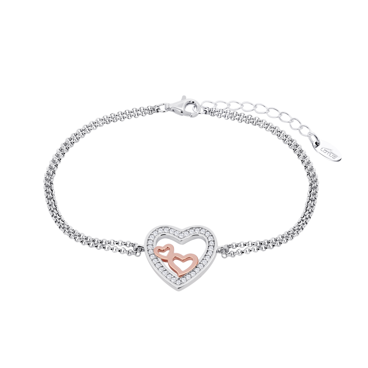 Pulsera Plata Bicolor Rose Lotus LP1856-2/1 Corazones Circonitas