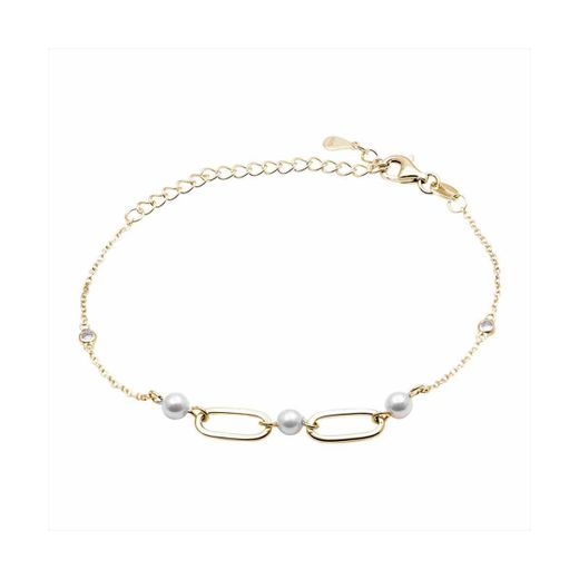 Pulsera Plata Dorada B19060GP Perlas Con Circonitas