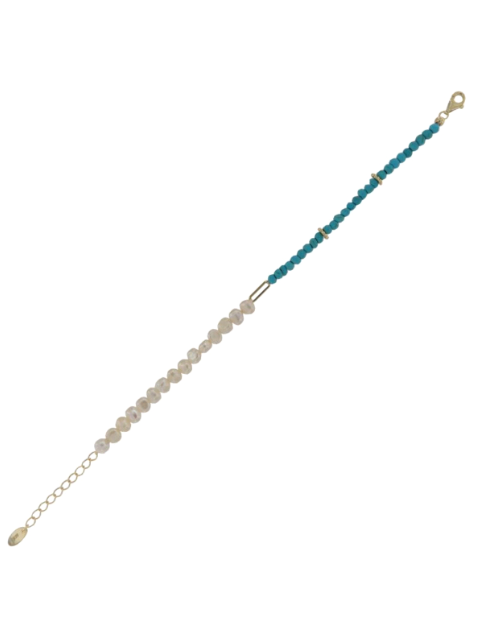 Pulsera Plata Dorada Mujer PPPT3 Circonitas Azules Perlas