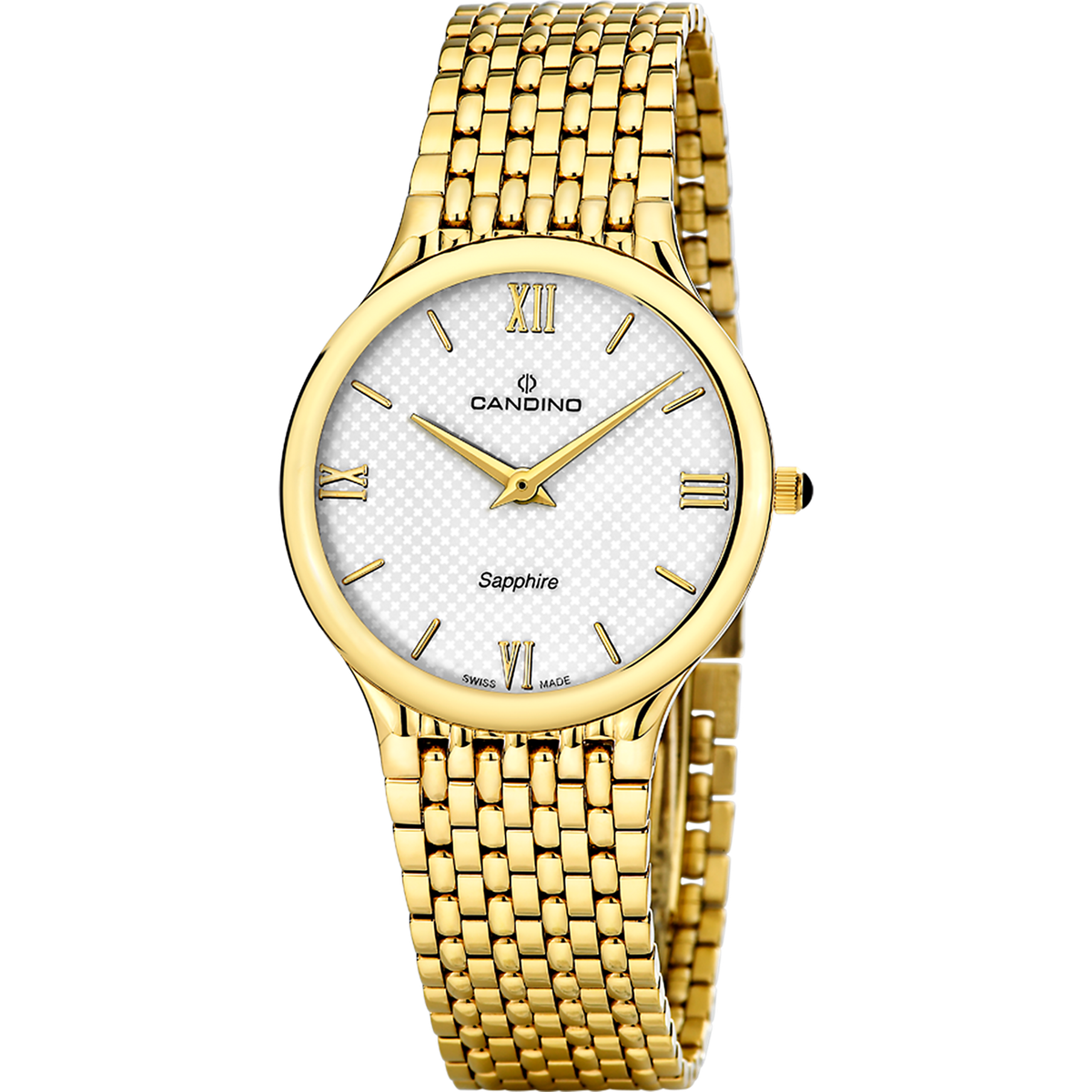 Reloj Candino Hombre C4363/2 Acero Dorado Analógico. Caja de acero de 36mm de diámetro. Bisel dorado. Brazalete de acero inoxidable dorado. Cierre desplegable. Esfera plateada. Cristal zafiro. Movimiento quartz. Swiss Made. Sumergible 30m. Peso 60gr. 3 años de garantía. Ref C4363/2