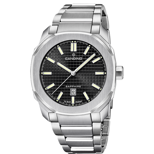 Reloj Candino Hombre C4754/4 Acero Analógico. Caja de acero inoxidable de 42mm de diámetro. Bisel plateado. Brazalete de acero inoxidable. Cierre desplegable. Esfera negra. Multifunción, calendario. Cristal zafiro. Movimiento quartz. Swiss Made. Sumergible 100m. Peso 50gr. 3 años de garantía. Ref C4754/4