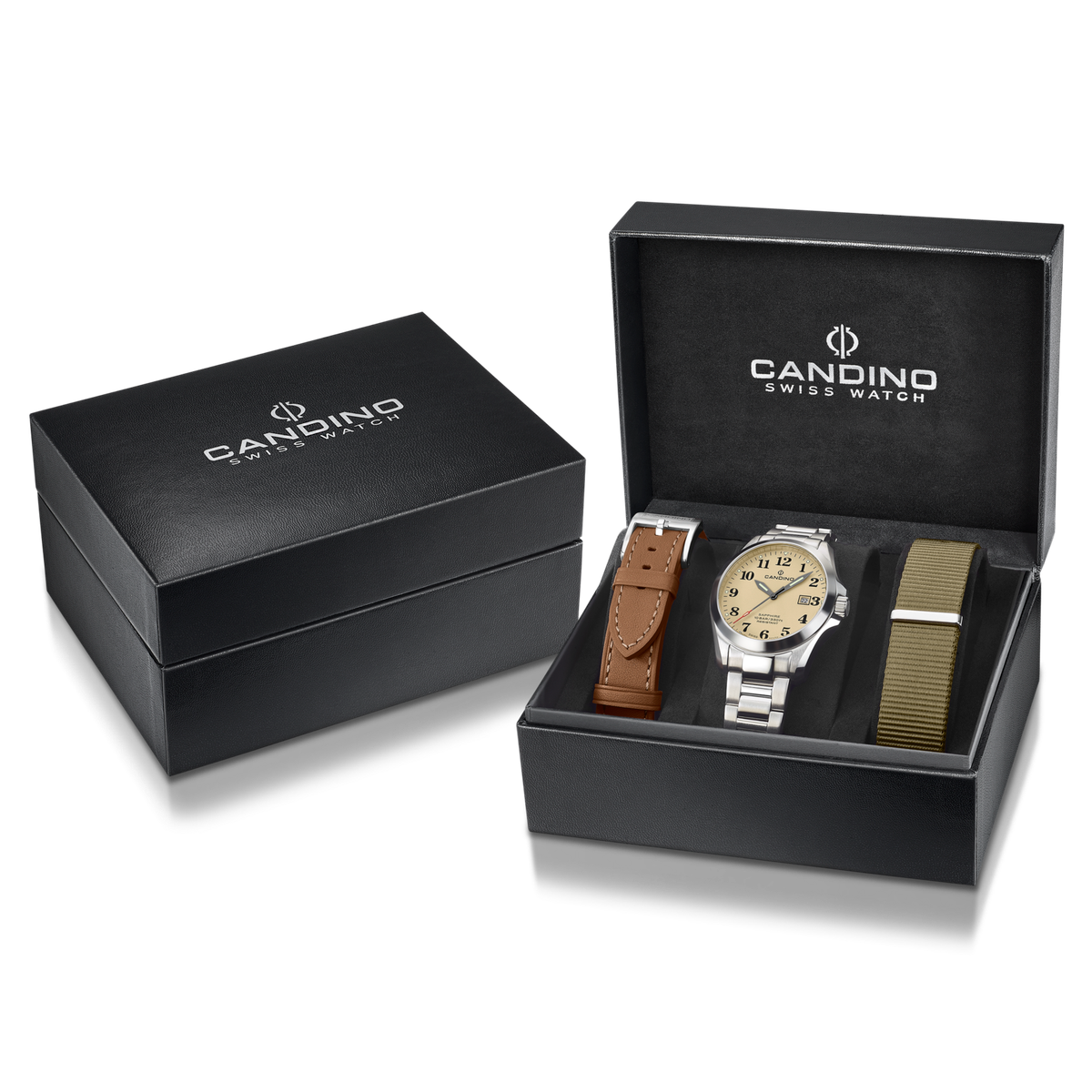 Reloj Candino Hombre C4785/1 Acero Analógico C/ Correas Intercambiables. Caja de acero inoxidable de 41,5mm de diámetro. Bisel plateado. Brazalete de acero inoxidable. Cierre desplegable. Esfera marrón. Multifunción, calendario, superluminova en agujas. Incluye dos correas intercambiables, una de piel y otra de tela. Cristal zafiro. Movimiento quartz. Swiss Made. Sumergible 100m. 3 años de garantía. Ref C4785/1