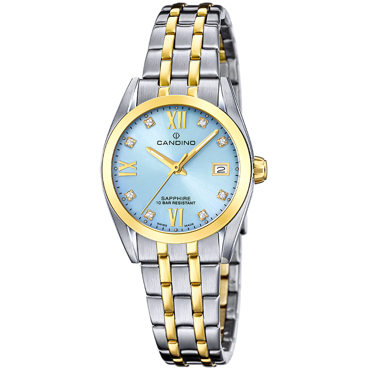 Reloj Candino Mujer C4704/G Acero Bicolor Dorado Analógico. Caja de acero plateado bicolor dorado de 28,5mm de diámetro. Bisel dorado. Brazalete de acero inoxidable plateado bicolor dorado. Cierre desplegable. Esfera azul. Multifunción, calendario. Cristal zafiro. Movimiento quartz. Swiss Made. Sumergible 100m. 3 años de garantía. Ref C4704/G