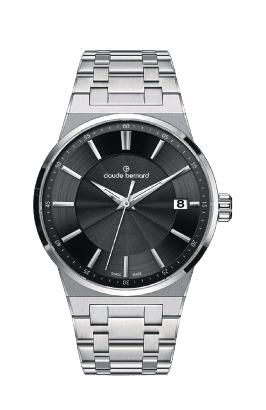 Reloj Claude Bernard Mujer 50505 3M NIN Swiss Made Acero Analógico. Caja de acero de 35mm de diámetro. Bisel plateado. Brazalete de acero inoxidable. Cierre desplegable. Esfera negra. Multifunción, calendario. Cristal zafiro. Movimiento quartz. Swiss made. Sumergible 100m. 3 años de garantía. Ref 50505 3M NIN