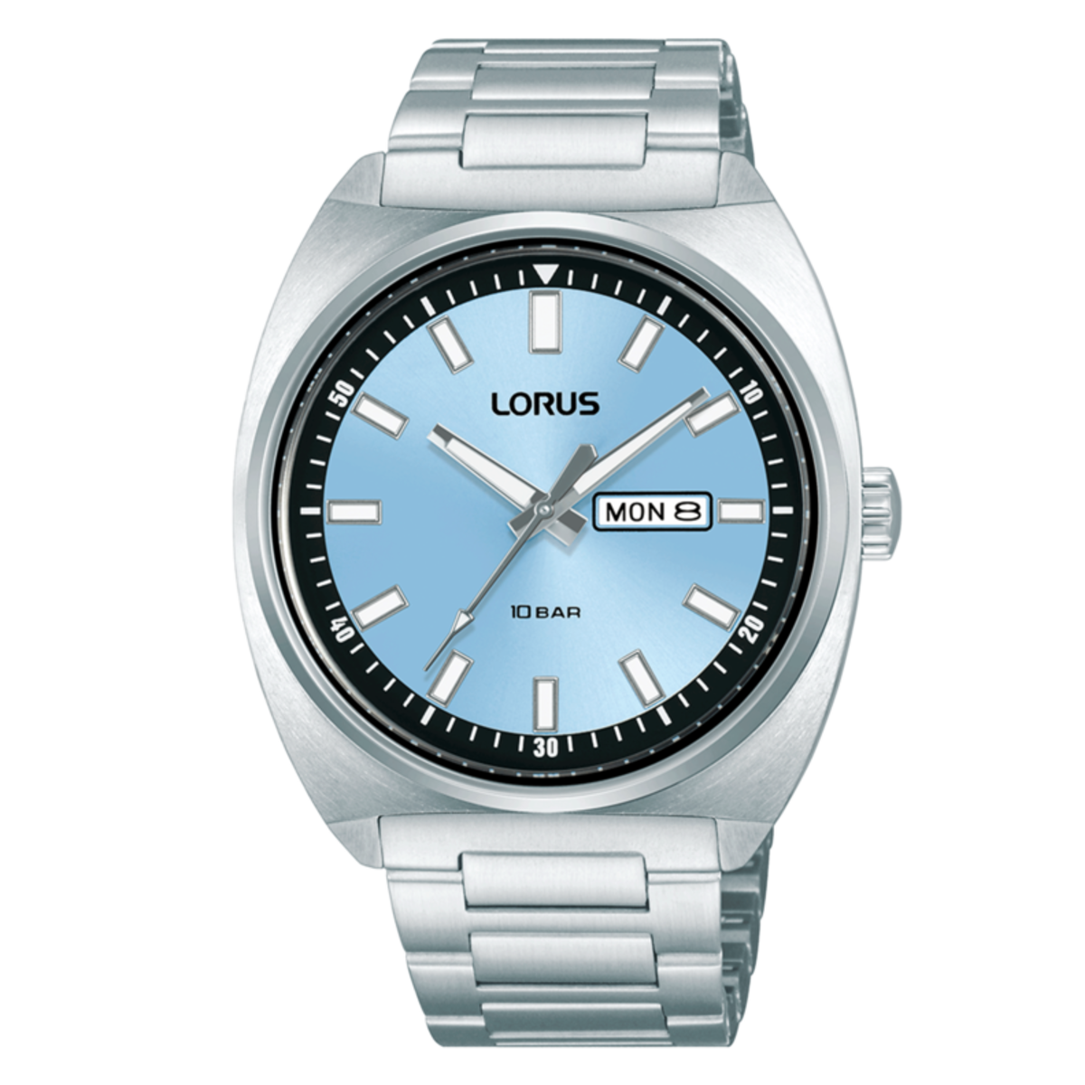 Reloj Lorus Hombre RH317BX9S Acero Analógico. Caja de acero de 41mm de diámetro. Bisel plateado. Brazalete de acero inoxidable. Cierre desplegable. Esfera azul bicolor negra. Multifunción, calendario. Cristal mineral. Movimiento quartz. Sumergible 100m. 3 años de garantía. Ref RH317BX9S